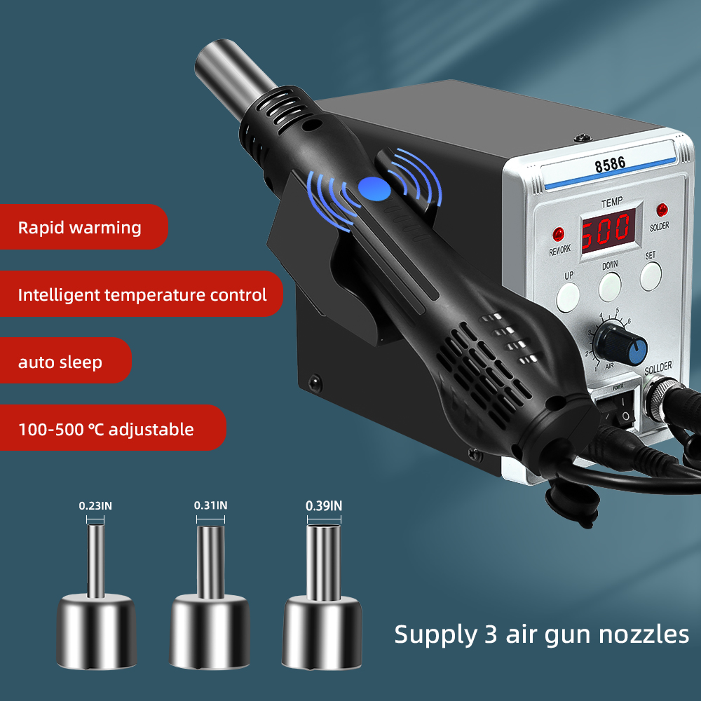 | Included Accessories | Hot air gun, soldering iron, nozzles, iron stand (varies by package) |
