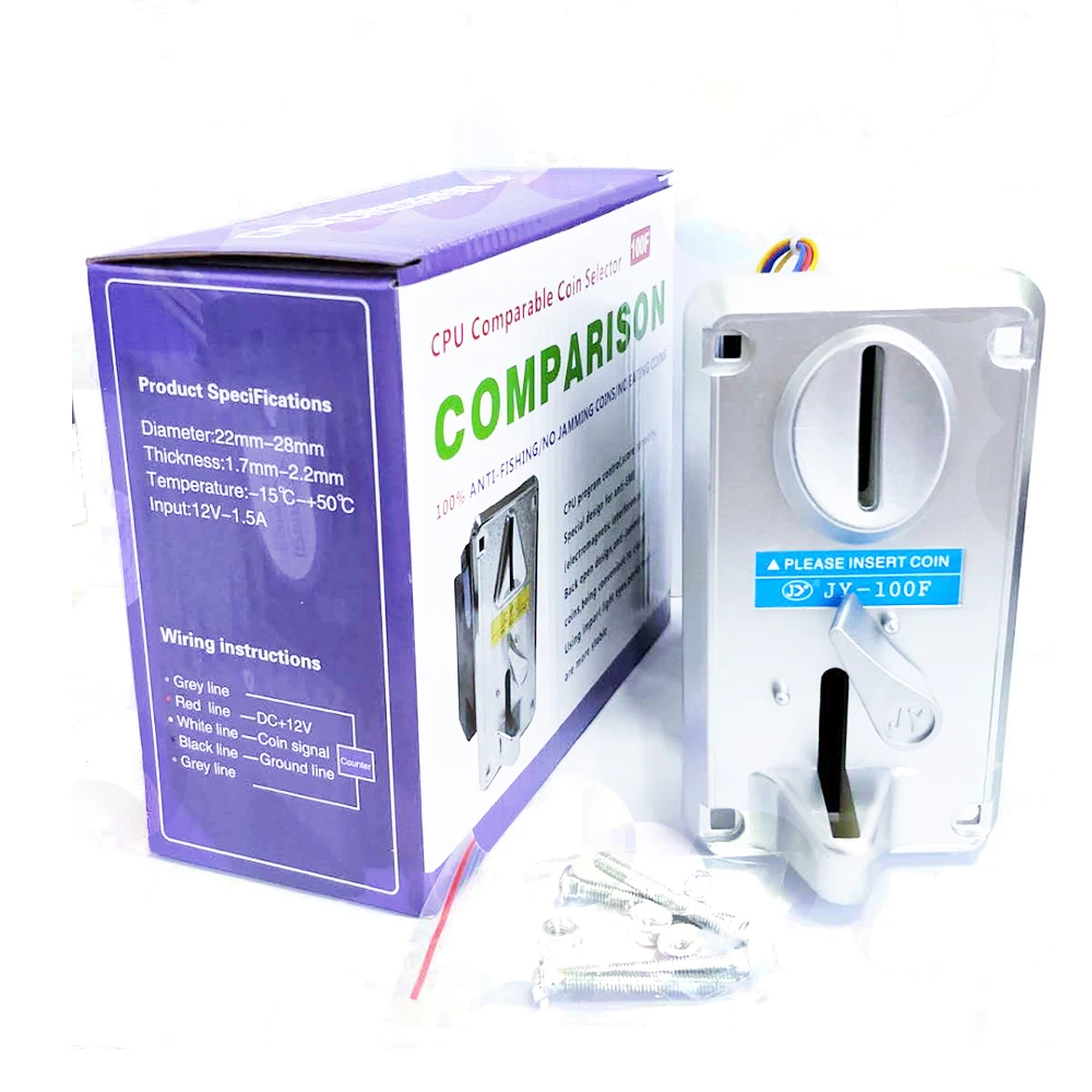 How it works-The JY-100F electronic coin acceptor is a compact and versatile coin-validation module designed for arcade machines, vending machines, arcade-style game panels, and other coin-operated systems. It identifies and processes specific coin sizes or denominations, providing reliable acceptance and rejection signals for automation systems.