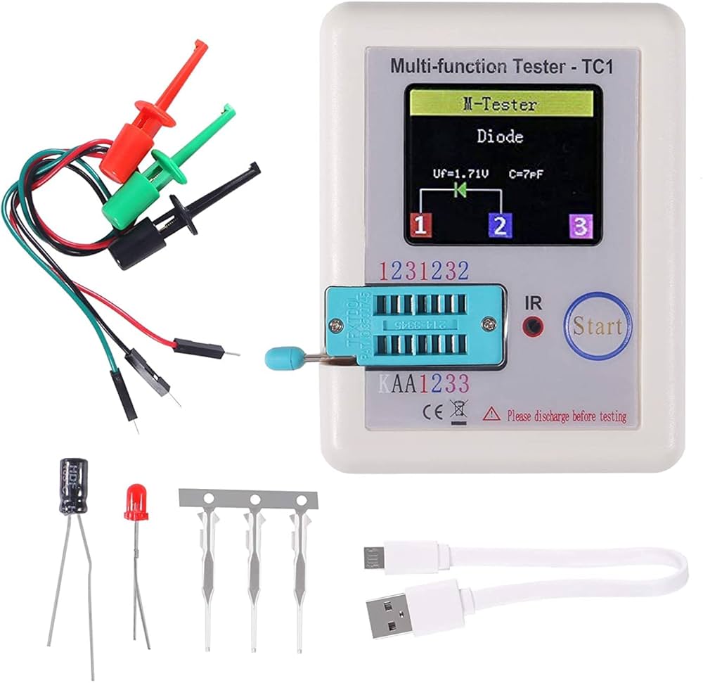 -The LCR-TC1 Multifunction Tester is a compact, intelligent component analyzer designed for quick, accurate identification and measurement of a wide range of electronic components. Featuring an easy-to-use interface and a clear color LCD display, this tester is ideal for technicians, students, repair shops, and electronics hobbyists who need fast, reliable readings.