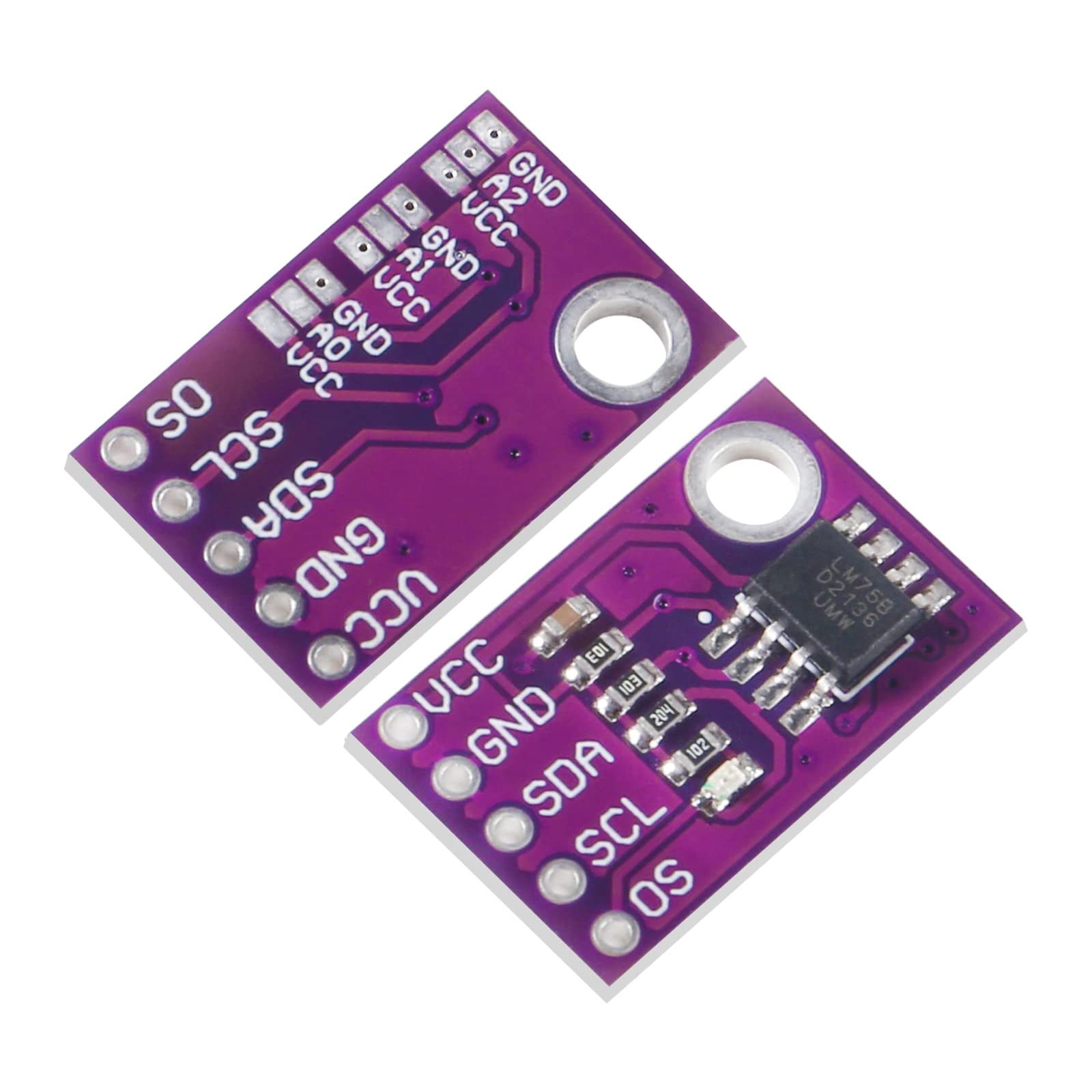 Built on the LM75/LM75B digital temperature sensor IC, the module is ideal for projects that demand dependable thermal data—such as environmental monitoring, smart home systems, HVAC control, battery temperature management, and prototyping. Its compact PCB includes clearly labeled pins (VCC, GND, SDA, SCL), ensuring plug-and-play integration with platforms like Arduino, Raspberry Pi, ESP32, STM32, and more.