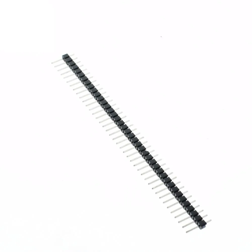 The 40-pin male single-row pin header is a foundational component in electronics. With 40 aligned metal pins spaced at the standard 2.54 mm pitch, it allows you to easily interface your microcontroller, sensor modules, and other hardware using female headers, jumpers, or directly to PCBs.