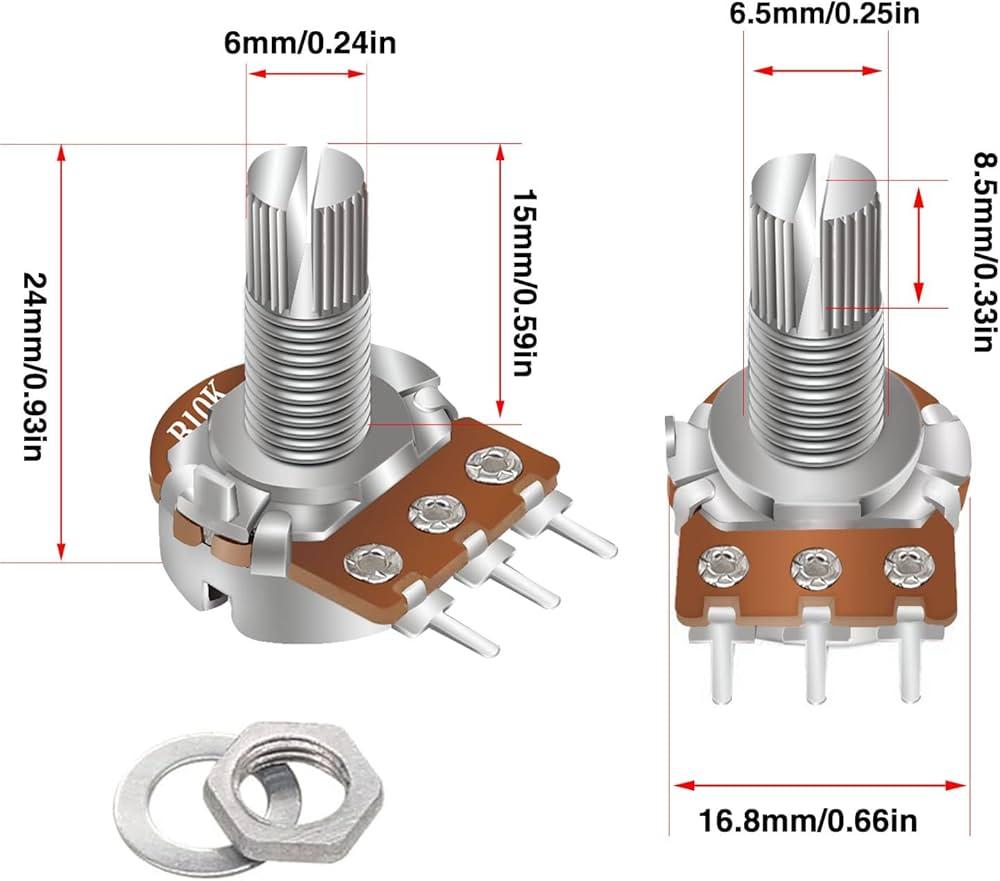 • Type: Single-turn rotary potentiometer (typically linear taper)