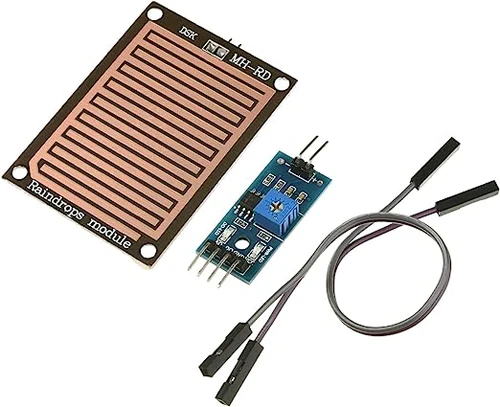 The Raindrops Detection Sensor Module is a versatile and widely used electronic module designed to detect water droplets, rain, or moisture on its sensing surface. It is commonly used in Arduino and IoT-based projects such as weather stations, smart irrigation systems, and automatic rain detection systems.