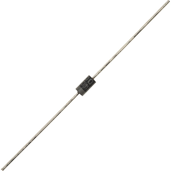 Simple integration — Its through-hole DO-41 package makes it easy to solder into PCB or prototype boards for power electronics and repair work.