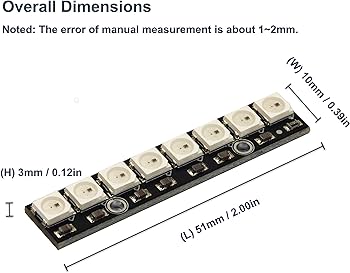 How it works-The WS2812B 8-Bit RGB LED Strip is a vibrant, addressable lighting module that brings dynamic color effects and stunning visual displays to your electronics projects. Each strip contains 8 individually controllable RGB LEDs, allowing you to create smooth animations, gradients, and color patterns with incredible precision.